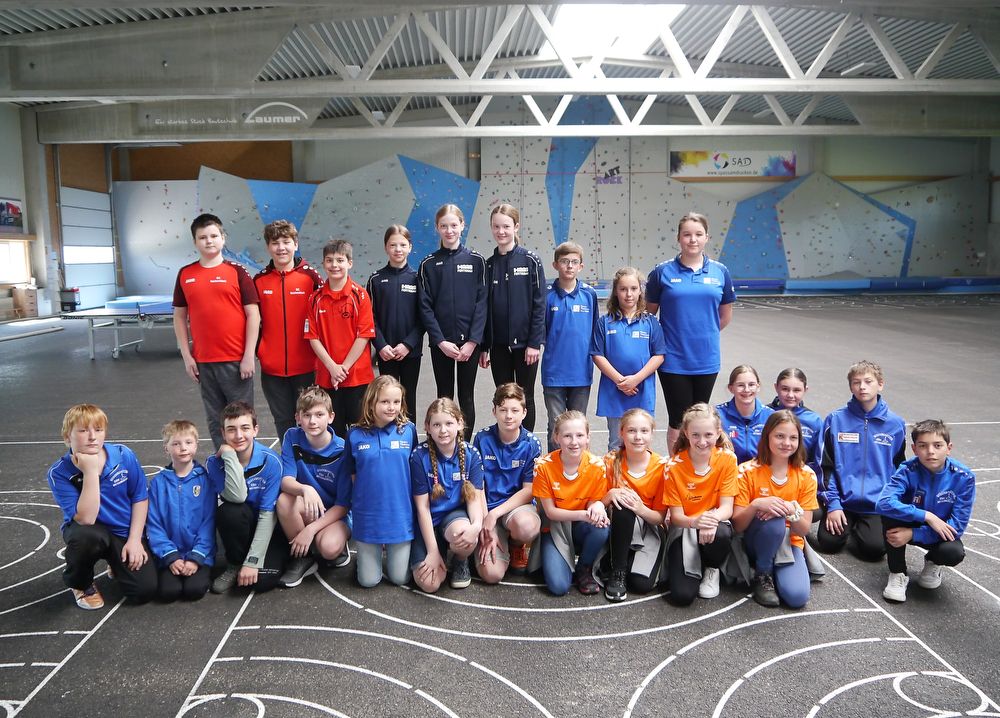 Unser Bild zeigt hinten von links die drei Podestformationen den SC Reicheneibach mit Johannes Wintermaier, Jakob Lachner und Jakob Gangkofner das Siegerteam aus Wilhelmshöhe mit Anna Huber, Johanna und Leonie Attenberger sowie den EC Prienbach mit Quirin Brodschelm, Julia Steininger und Antonia Haderer. Vorne von links die weiteren Aufsteiger der ESV Mitterskirchen II , EC Prienbach II , SV Halsbach und ESV Mitterskirchen I.