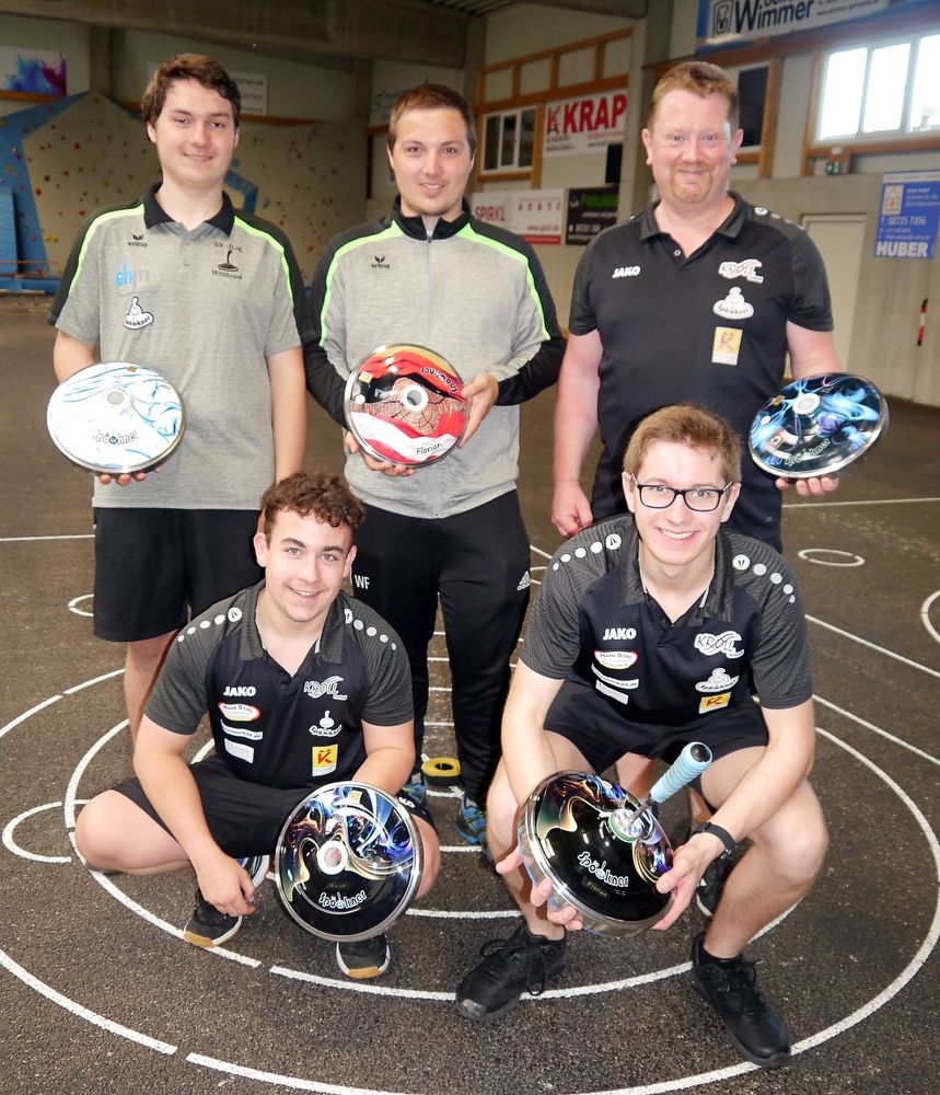 Bild oben: Unser Bild zeigt die fünf besten bei den Herren, die zugleich in verschiedenen Nachwuchsklassen dominierten und jeweils über 300 Punkte erzielten – hinten von links Jonas und Florian Wimmer, beide von der DJK-SV Wittibreut , Holger Kreuzeder, Marco Straubinger und Florian Kreuzeder, alle ESC Rattenbach