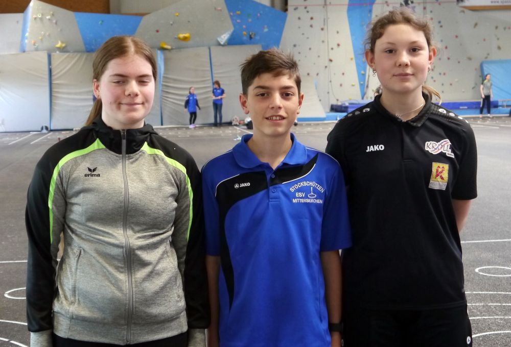 Kreismeister von links: Anja Regiert vom DJK-SV Wittibreut in der weiblichen U 16 , Korbinian Hahn Schüler U 14 und Eva Kreuzeder weibliche U 14