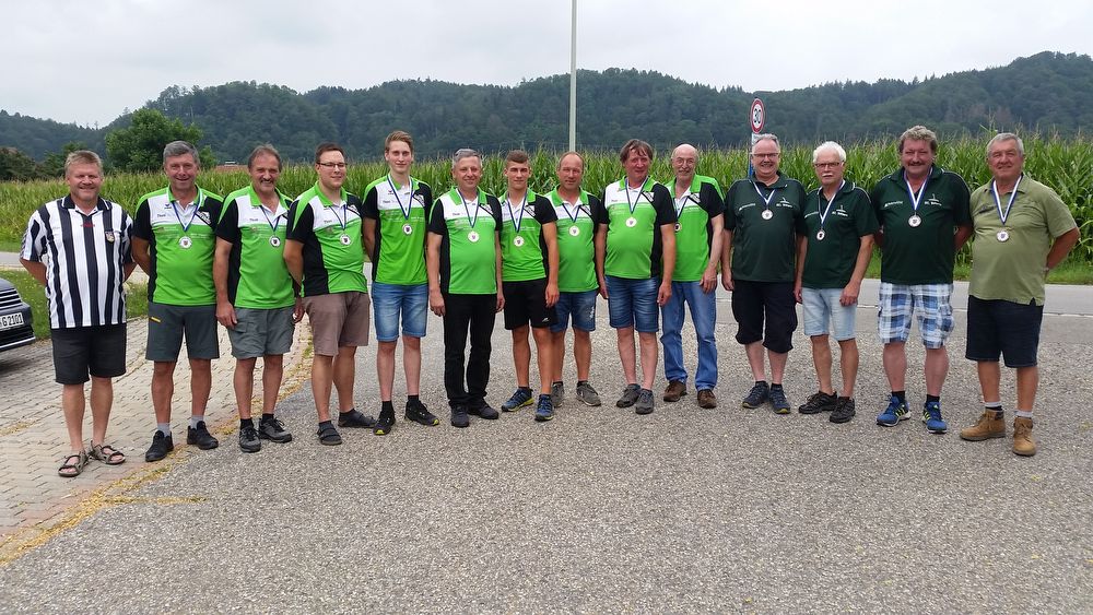 Aufsteiger in die Kreisliga: von links Schiedsrichter Franz Watzenberger vom EC Julbach die beiden Formationen des SSV Zimmern sowie der EC Triftern II.