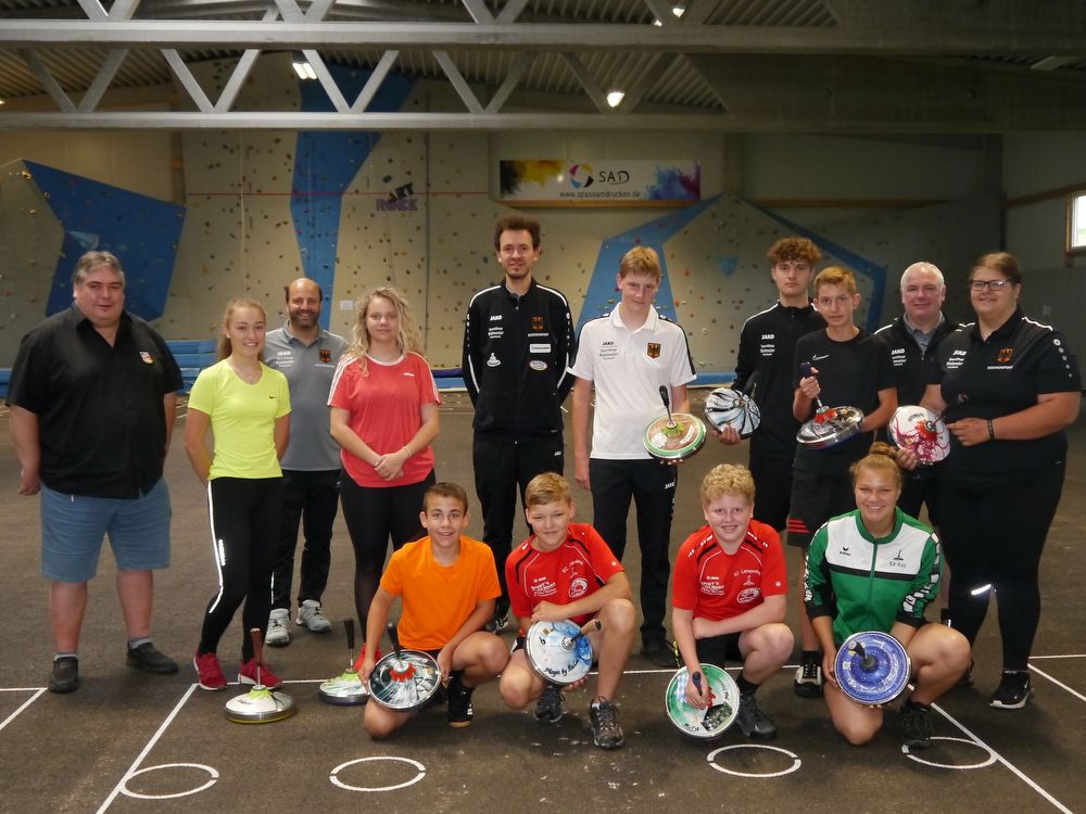 Waren wieder angetan von den Möglichkeiten eines Lehrganges in der Mehrzweckhalle am Wassergarten: die Deutsche Jugendnationalmannschaft zusammen mit ihren Trainern.