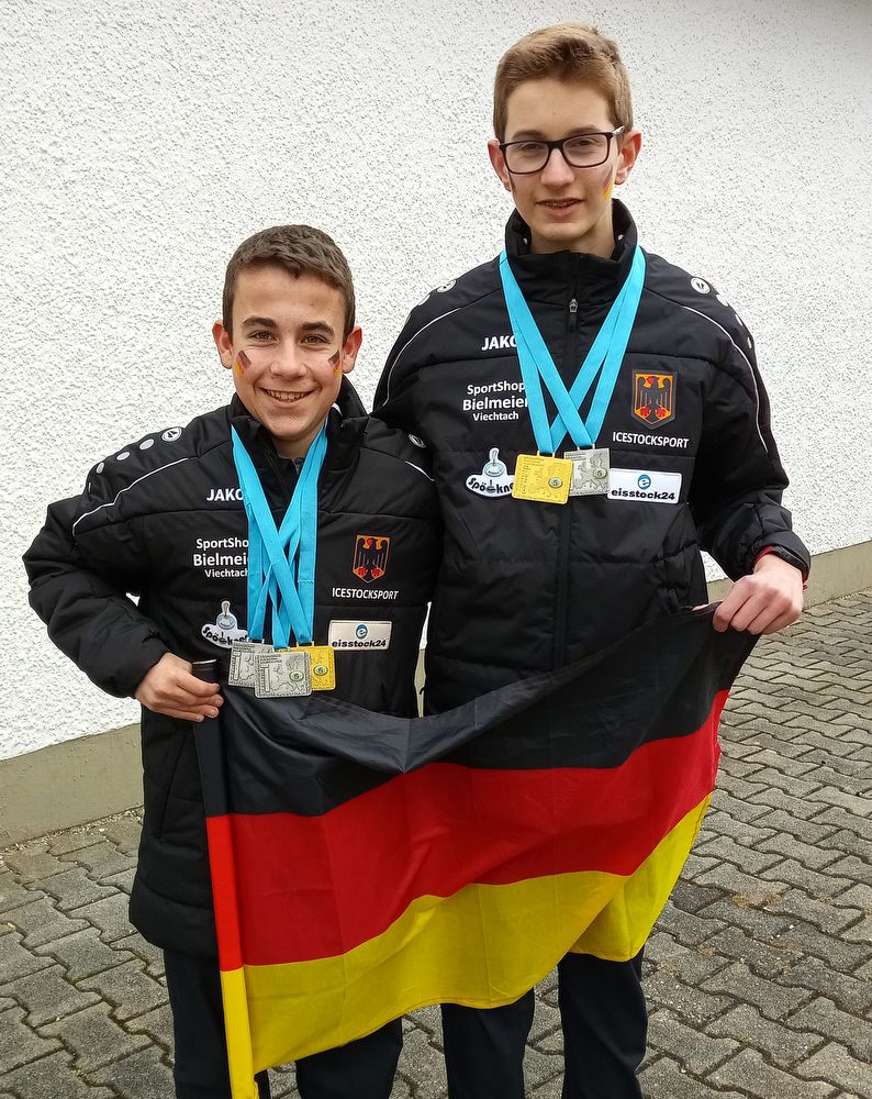 Über insgesamt zehn Medaillen durften sich die Nachwuchsstocksportler des Stocksportkreises Rottal Inn bei den Europameisterschaften der U 16 und U 19 sowie den der WM U 23 in Klobenstein in Südtirol freuen. Herausragend natürlich der Medaillensatz von dem 14jährigen Marco Straubinger vom ESC Rattenbach mit einmal Gold und zweimal Silber, der damit bei allen drei Starts anlässlich der Siegerehrungen auf das Podest durfte und sich eine Medaille erkämpfte.