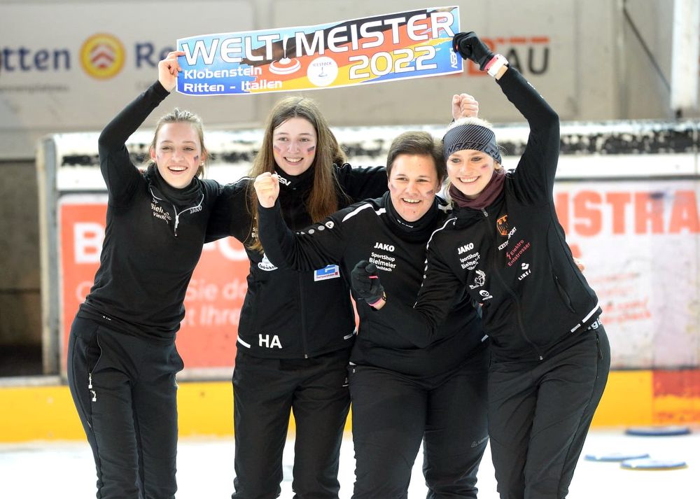 In die Knie zwang dagegen das weibliche Deutsche U 23 Team die Mädels aus Österreich bei den zwei Entscheidungen im Teambewerb und dem Einzelschießen. Ein totes Rennen lieferten sich dabei nach genau 96 Schüssen auf Stock und Daube im Einzelschießen Katharina Riepl vom TSV Bogen und Selina Steber vom TSV Peiting und hatten am Ende beide 621 Zähler auf dem Konto. Die jeweils letzte Bahn entschied schließlich zu Gunsten von Katharina Riepl 104 gegenüber 94 von Selina Steber. Bronze holte für Österreich Julia Omelko 613 Punkte. Nicht eingreifen in dem Kampf um die Medaillen konnte Anna Hinteraicher und verspielte mit 135 und 128 Punkten bereits in der Vorrunde den Traum von einer Einzelmedaille. Sehr gute Durchgänge von 145 und 149 Punkten im Finale ergaben schließlich den respektablen siebten Platz mit 557 Punkten in dem Feld der 19 Starterinnen aus sieben Nationen. Jede Menge Grund zum Jubeln gab es aber dann für Anna Hinteraicher in der Teamwertung des Zielschießens. Mit insgesamt 315 Punkten gewann sie deutlich zusammen mit Selina Steber, Katharina Riepl und Alina Mayer den WM-Titel vor Österreich 267, Italien 202 und Tschechien 179 Punkte. 76 Punkte sammelte sie dabei in der dritten Bahn, dem seitlichen Maaßen.