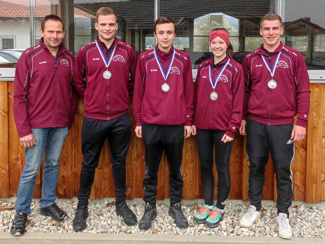 Platz zwei bei der Bezirksmeisterschaft und den Aufstieg zur Bayerischen Meisterschaft schaffte das U 23 Team des SSC Untergrasensee: Von links Trainer Heinz Edmaier, Oskar Maier, Markus Schmaus, Sandra Thalbauer und Simon Huber.
