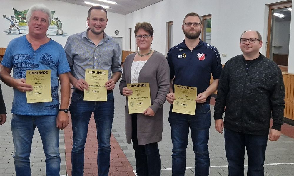 Nach der Feststellung der anwesenden Schiedsrichter erinnerte Obmann Rainer Altmannshofer über die Besonderheiten der künftigen Materialkontrollen, beim Stockkörper, den Laufsohlen und den Stielen. Breiten Raum nahmen dann diverse Regeln und deren Auslegungen in der Praxis ein. Ausgezeichnet wurde dann in Gold Barbara Wimberger vom ESV Mitterskirchen für 20jährige Tätigkeit. Für zehn Jahre gab es die Auszeichnung in Silber für Michael Zauner vom SV Hebertsfelden, Christian Hoffmann vom ESC Rattenbach und Rudolf Roiter von der DJK-SV Wittibreut. Gratuliert wurde zudem Rainer Altmannshofer zur Wahl des stellvertretenden Landesschiedsrichterobmannes.