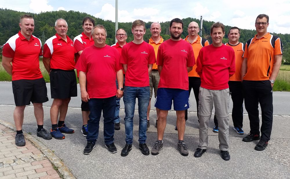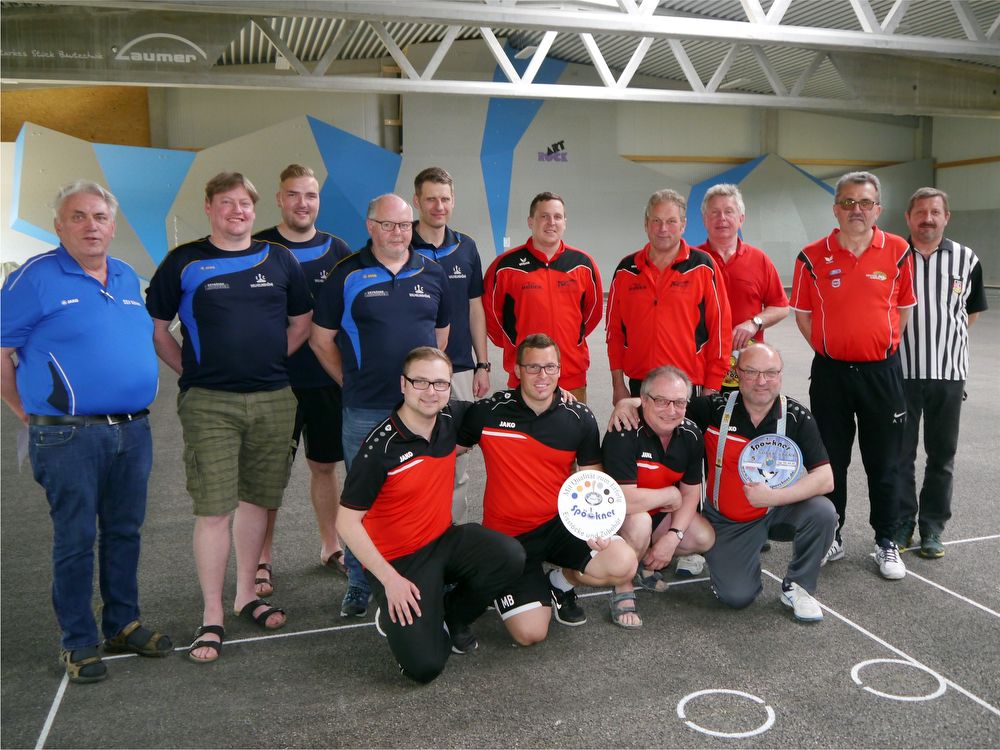 Die drei Besten des B Pokales und Aufsteiger in den A Pokal – von links hinten der TSV Neukirchen mit Andreas Friedrich, Josef Wimmer, Florian Moosmüller und Horst Strauß, der SSC Kollbach mit Stefan Baumgartner, Thomas Schwimmer, Josef Ziegler und Johannes Maier und vorne der ESV Johanniskirchen mit Johann Schwarzmeier, Lukas Saller, Christian Bachmaier und Franz Freilinger