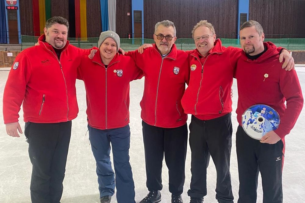 Als Meister in der Bezirksoberliga schaffte der EC Irging Simbach II den Aufstieg in die Bayernliga- von links Sebastian Schmid, Peter Spielbauer, Werner Huber, Josef Spielbauer und Gottfried Bruckmaier