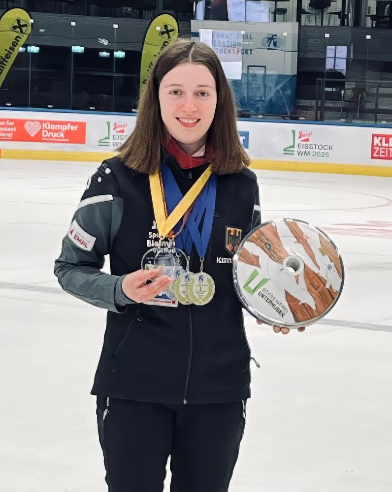 Nicht das erhoffte Gold gab es dabei im abschließenden Mannschaftsspiel. Bereits in der Vorrundengruppe ließ im deutschen Damenteam mit Verena Gotzler, Ulrike Lachenmayer, Rebecca Jüngel, Veronika Filgertshofer und Anna Hinteraicher nicht alles nach Wunsch. Nie so richtig kamen die Damen in Schwung, so Anna Hinteraicher im Gespräch mit der Heimatzeitung. Mit insgesamt 18:6 Punkten gab es dritten Platz hinter Österreich 22:2 und Italien mit 20:4 Punkten. In der entscheidenden Finalphase der vier besten Teams wurde schließlich mit einem 14:4 über die viertplatzierten Tschechien das weitere Vorrücken in das Finale erreicht. Hier wartete dann das Team Italien auf die deutsche Vertretung, welche gegen Österreich mit 4:14 das Nachsehen hatte. In dieser entscheidenden Begegnung um den Einzug in das Finale verloren die Damen um Anna Hinteraicher aber klar mit 4:16 und somit blieb in der Endabrechnung der dritte Platz. Ein hochklassiges Finale sahen dann die vielen Zuschauer in der sehr gut gefüllten Arena von Kapfenberg mit über 1500 Zuschauern in der Partie Österreich gegen Italien. Großer Jubel schließlich bei den Damen aus Italien nach dem 10:9 Erfolg. Auch wenn es nicht das gewünschte Gold wurde wird diese Bronzemedaille von Anna Hinteraicher einen Ehrenplatz erhalten, ist sie doch die erste WM-Medaille im Damenmannschaftsspiel der Königsdisziplin im Stocksport. So ist sie natürlich auch zufrieden mit diesem dritten Rang bei ihrem Premierenauftritt. In ihrer nun mehr als zehntägigen WM Bilanz in Kapfenberg mit insgesamt drei Gold, einer Silber- und einer Bronzemedaille ist die Freude nun groß wieder daheim zu sein. Viel zu erzählen hat sie natürlich ihren Sportkameraden, Freunden und Bekannten über diese WM, deren Organisatorisch allerdings einiges zu wünschen übrig ließ. Vorab ist erst einmal Abstand angesagt und die Sommersaison wird langsam und ruhig angegangen, so Anna Hinteraicher. Zehn Tage WM mit insgesamt fünf Starts, wo für das deutsche Team wie in anderen Wintersportarten immer nur die Titel zählen, verlangt schon einiges an Kraft, Ausdauer und Substanz. (hm)