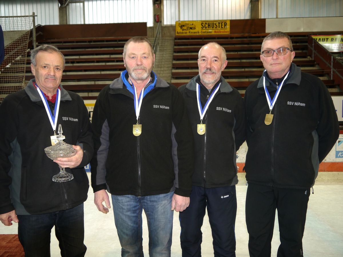 Eine großartige Vorstellung beim Bayernfinale der Herren Ü 60 gab auch der SSV Nöham. Franz Gisnapp, Siegfried Dickl, Siegfried Schmied und Ludwig Stütz besiegten im Spiel um Gesamtplatz drei den MTV Rosenheim mit 21:0. Sehr gut in Schuss war das Quartett bereits in den Vorrundenspielen, wo sie in der Gruppe rot mit 12:4 Punkten den glänzenden zweiten Platz hinter dem überragend aufspielenden TSV Gars am Inn (16:0 Punkte) belegten. Bayernpokalsieger wurde der TSV Gars, der im Finale den SV Pocking nach Verlängerung mit 27:15 besiegte.
