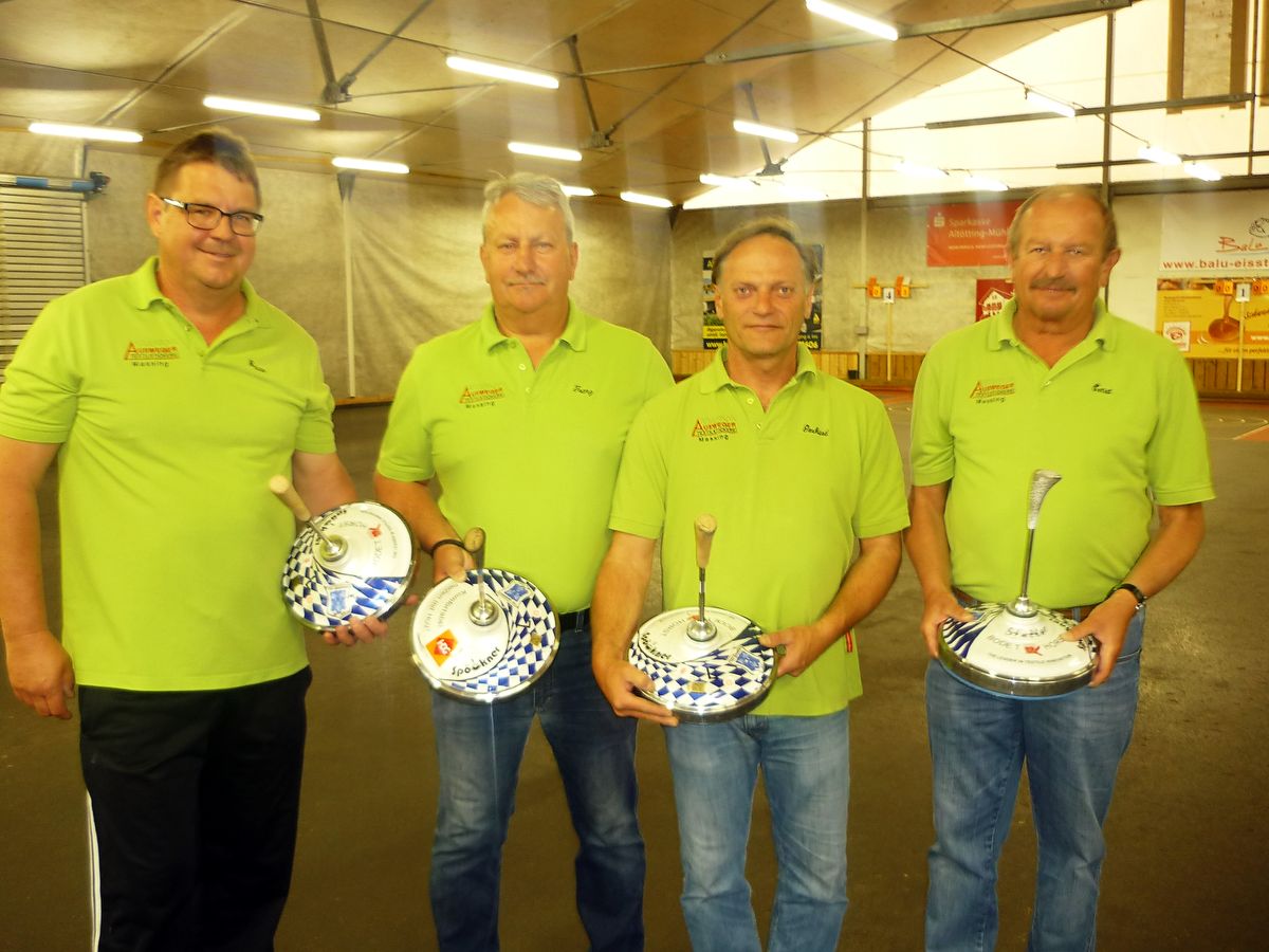 Allein die Herren des TSV Massing konnten beim Bezirksfinale der AH in der Halle von Töging den Eisstockkreis erfolgreich vertreten. Lange spielten auch die weiteren Vertreter der EC Irging Simbach und der ESV Mitterskirchen um die fünf Aufstiegsplätze mit. Mit Ende der Vorrundenspiele schwächelten allerdings beide Formationen und erreichten die jeweiligen Gruppenplätze fünf.